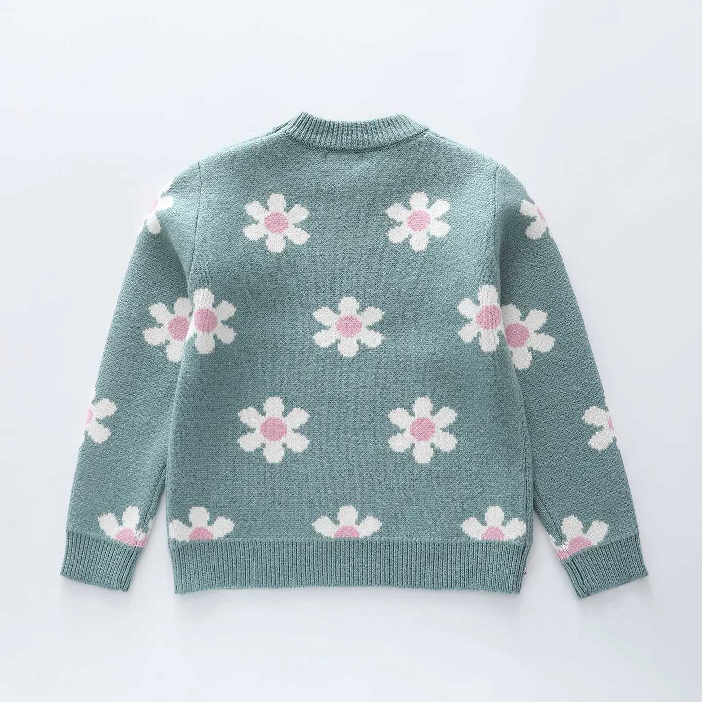 Made with soft and heavy set yarn, our girls Flower Jacquard Knit Jumper will keep your little lady toasty warm and comfy. Showcasing an all over sweet floral motif, this beautiful knit pull over is perfect for every day adventures and will be her go to when the temperature falls.